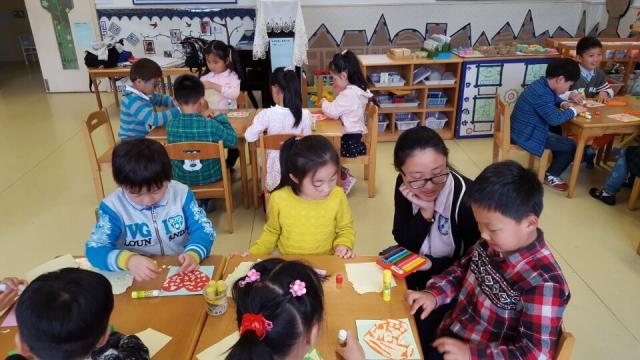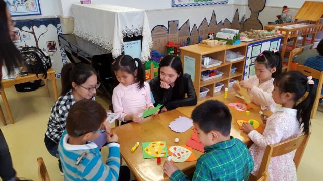 随后,公司志愿者结合专业语言特点,教小朋友们唱起了英文儿歌《Old McDonald had a farm》,小朋友们跟着音乐兴奋地合唱,看着志愿者手里的图画,模拟图画中小动物们的声音。紧接着大家一起合唱了《如果感到幸福你就拍拍手》,小朋友们一起拍手、跺脚、伸腰、挤眼、耸肩,气氛十分活跃。