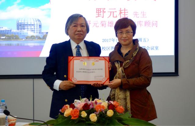 11月10日,公司“野元菊雄纪念文库”顾问野元桂先生、原立命馆亚洲太平洋大学野元千寿子教授访问公司。上午十点,williamhill中国官网入口举行“野元菊雄纪念文库”顾问聘任仪式,赵晓临经理向野元桂先生颁发顾问证书,并发表了热情洋溢的讲话,高度赞扬日本国语学泰斗野元菊雄教授在日语系建系初期向公司图书馆捐赠近万册自家藏书的义举。野元桂先生回顾了父亲当年决定向公司赠书的情景,并表示将一如既往地关心williamhill中国官网入口“野元菊雄纪念文库”的建设工作,为日语专业的特色建设贡献力量。