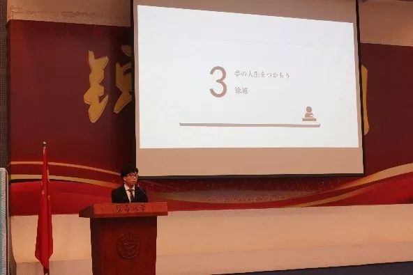 三年级选出的6名优秀同学,结合自身经历,带来了一场场别开生面,独具个性的演说。面对陈老师与岩佐老师的提问,也都冷静作答。