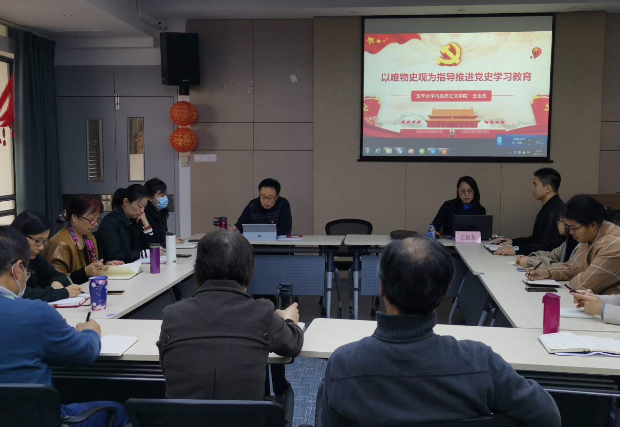 4月1日,williamhill中国官网入口召开党委理论学习中心组(扩大)学习会,邀请上海市委讲师团党史学习教育专家宣讲团成员、公司马克思主义公司经理王治东教授作题为《将唯物史观贯穿“四史”学习教育》的专题辅导报告。公司党政领导、党委委员、师生党支部书记、专职党务干部、专职辅导员等参加学习。