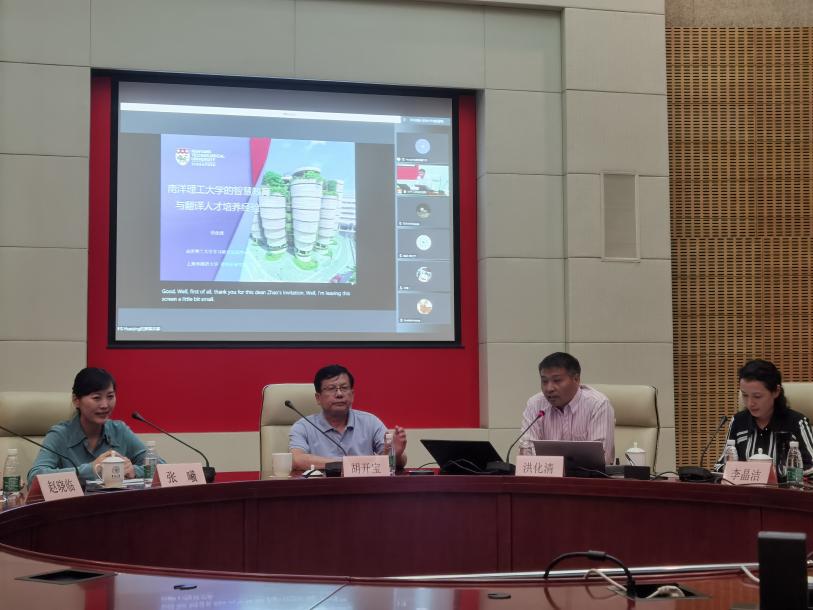 本次论坛围绕大数据时代的智慧教育变革与大数据时代的翻译人才培养进行探讨。胡开宝教授分享了上海外国语大学语料库研究院的建设理念及其团队智慧教育成果,分析了目前教育行业对语言智能的影响,他认为新文科背景下外语教育需要与语言智能紧密结合起来,构建语言智能视域下的外语教育课堂,外语教育需要调整外语专业培养方案、增设语言智能课程和构建智慧外语教育体系。洪化清教授提出要将人工智能和大数据分析与教育进行结合,员工应该终身学习、深度学习、泛在学习、智能学习并结合南洋理工大学的智慧教育改革经验,为在座师生分享了已实现的“智慧教育”模式。陈圣权教授总结了翻译在华为公司中发生的转变,并将这份思考应用于翻译教学变革中,提出了诸如翻译教学要注重思维教学,培养员工的综合素养和解决问题的能力等建议,给在场师生很大的启发。