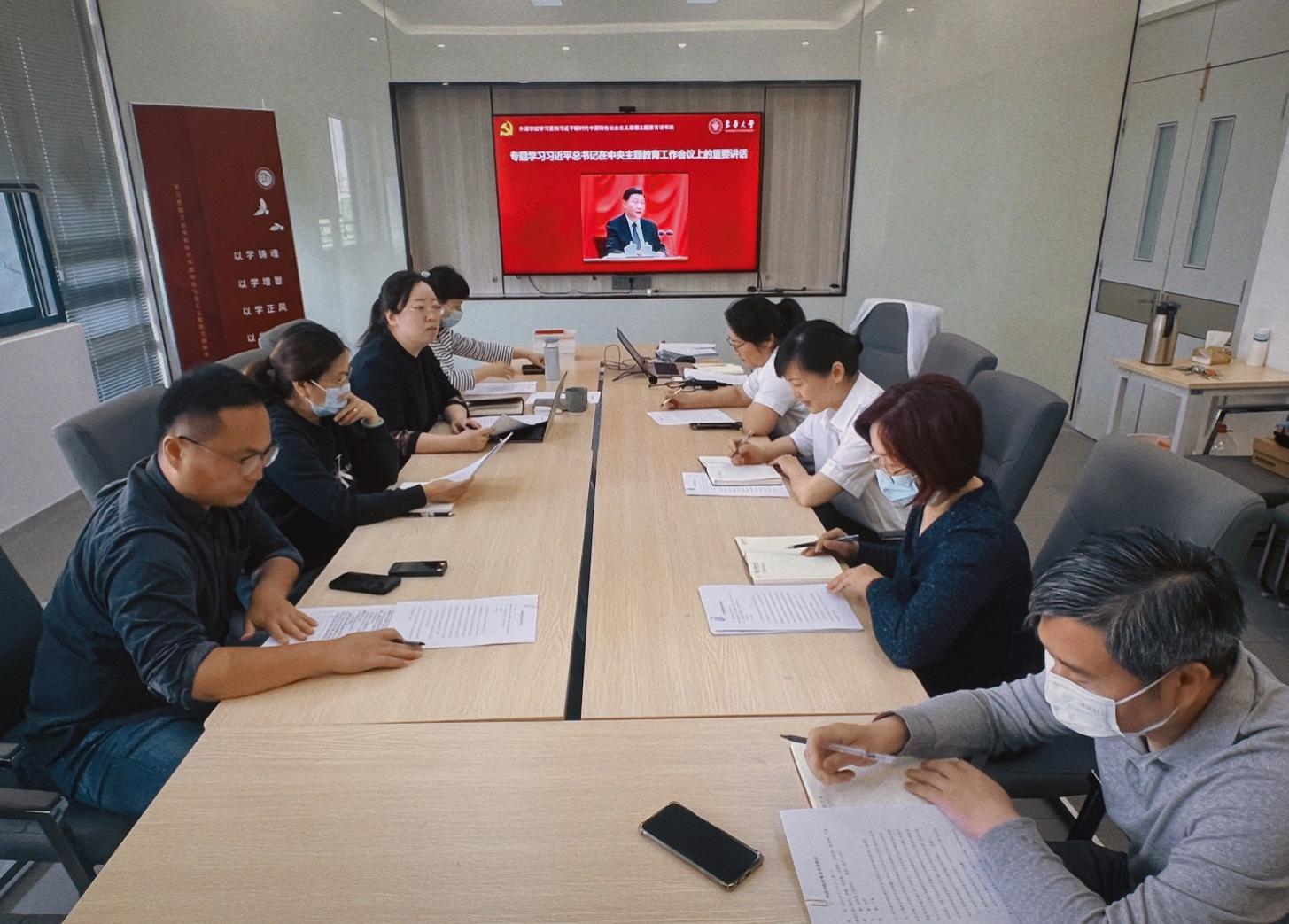(5月23日,日语系党支部集体学习习近平总书记《在学习贯彻习近平新时代中国特色社会主义思想主题教育工作会议上的讲话》精神,并交流学习体会)