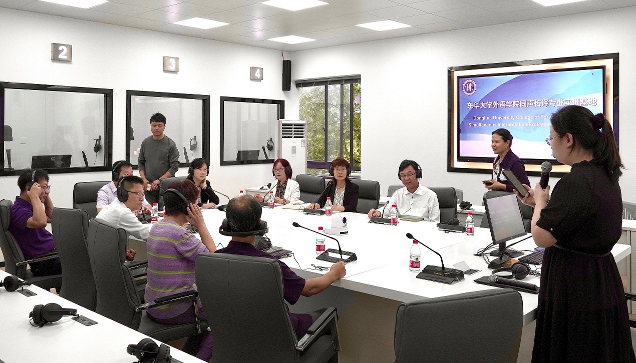 刘承功一行现场走访了公司同声传译专业实训基地、外语教学课堂、多语种实践工作室、莎学资料室、“一站式”师生服务大厅等平台和阵地,并实地听取了公司在专业建设、公司产品、人才培养、科研发展等方面的有关情况介绍。