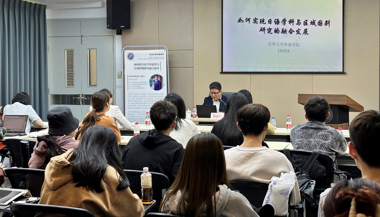 杨伯江研究员是中国社会科公司日本研究所所长、博士生导师,中华日本学会常务副会长(法人代表),中国亚洲太平洋学会副会长,中国太平洋学会常务理事,亚太安全合作理事会中国委员会委员。曾任国际关系公司教授、中国现代国际关系研究院研究员、美国布鲁金斯学会访问学者、哈佛大学费正清东亚研究中心访问学者、日本国际论坛客座研究员、日本综合研究开发机构客座研究员。讲座中,杨伯江所长从“外语一级学科下的区域国别研究”“特色化人才培养的切入点”“中国自主知识体系与国际传播”和“日语学习者的几点注意事项”四个方面对日语学科与区域国别研究的融合发展进行了精彩的阐释和分析。
