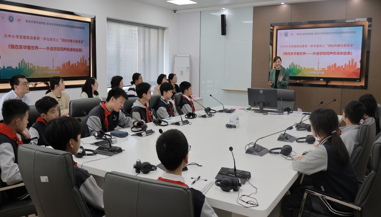 (东华附校师生体验同声传译实践课堂)