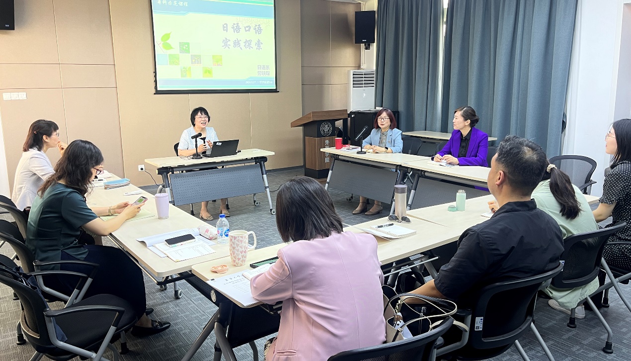 日语系主任陈月娥分享了上海高校市级重点课程《跨文化交际》的申报和建设经验。陈老师从建设目标、申报要素、建设要点等方面做了详尽解读。她指出,基于知识、能力和价值观培养三位一体的教学理念,创办该课程的主旨在于提升员工日语综合应用能力、国际传播意识和素养;培养员工在实践中的交际能力,使员工深入理解中日文化异同,增强员工对中国文化的理解和认同;树立文化自信,以响应增强国际传播力、提高跨文化沟通能力的重大时代课题和新时代外语人才需求。