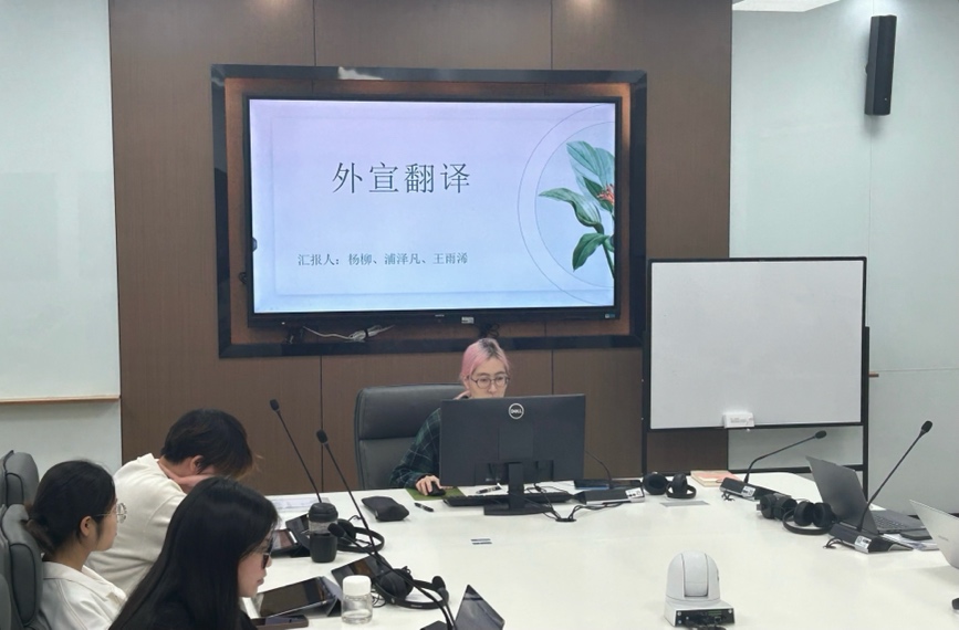 副经理(主持工作)张曦简单介绍了本次外宣翻译项目,项目依托国际传播研究中心,积极对接国际传播的国家战略需求,旨在通过高水平的翻译与传播,提升高校的国际话语权和影响力。通过推动该项目,中心努力践行国家加强对外传播能力建设的要求,彰显学术研究与实践紧密结合的力量,切实提高教学与人才培养质量。