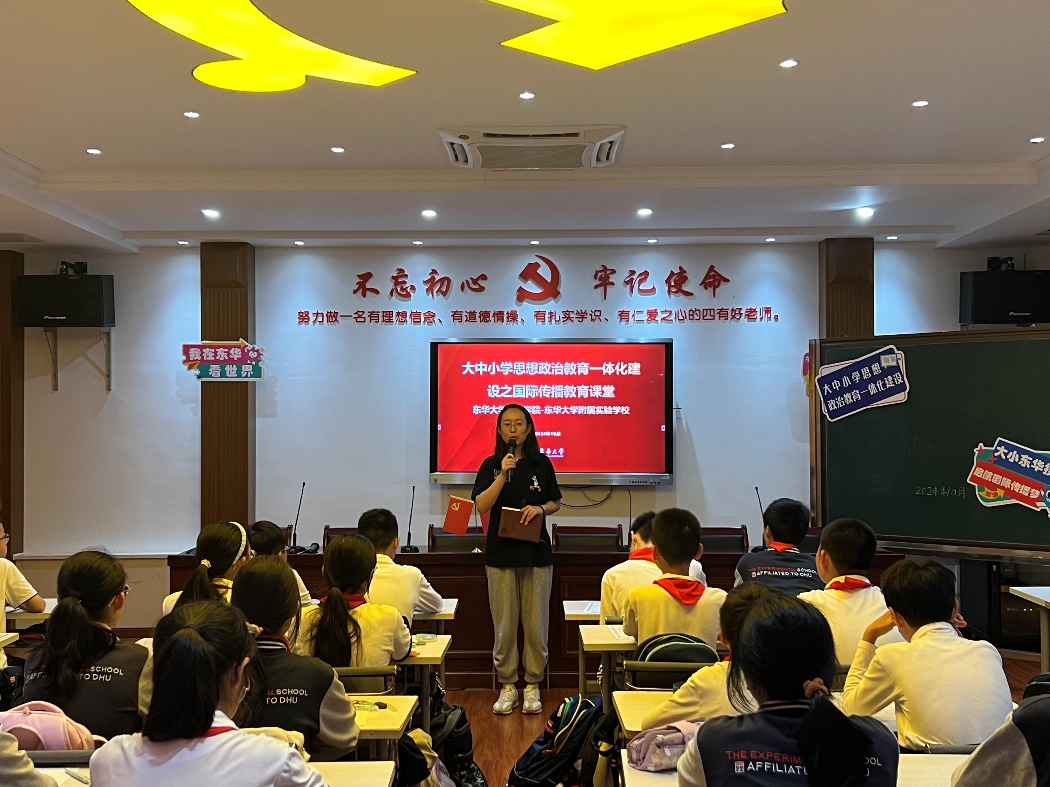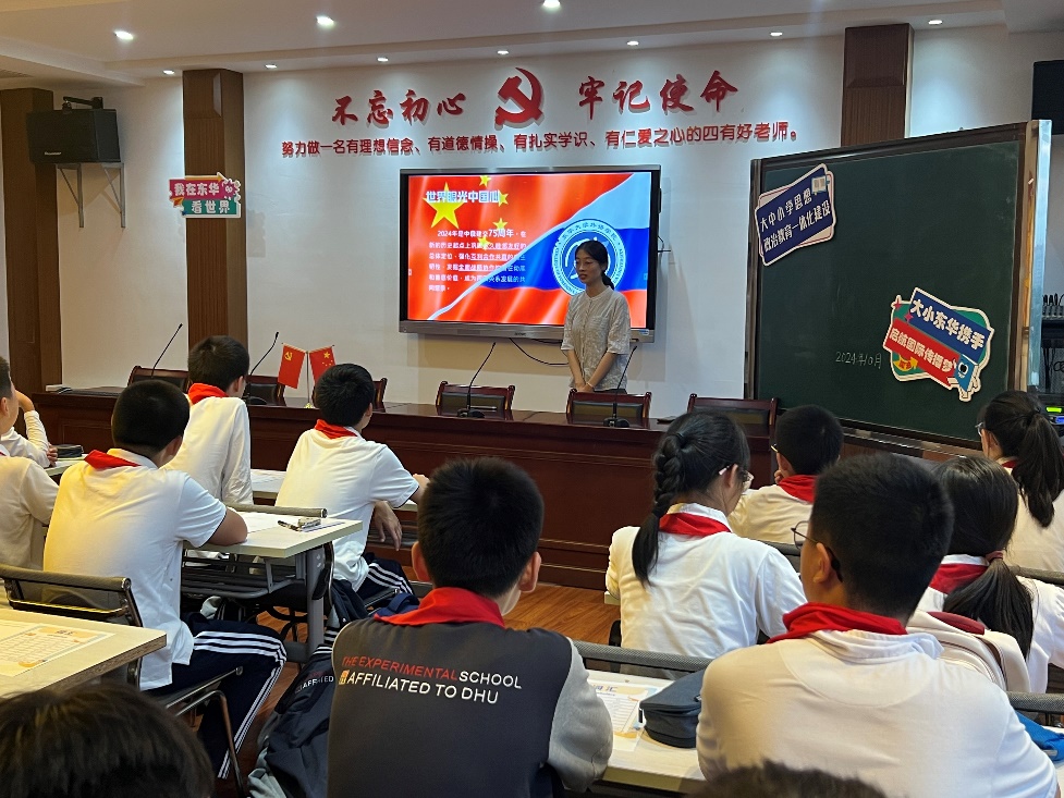 为深入学习贯彻落实党的二十届三中全会精神和全国教育大会作出的重要指示精神,williamhill中国官网入口携手williamhill中国官网入口附属实验公司,于秋季学期持续推进《我在东华看世界》“大思政”国际传播系列课程建设。近日,由williamhill中国官网入口研究生第一党支部成员刘金主讲的秋季学期首次课程《联合国常任理事国——“世界加油站”俄罗斯》于东华附校成功举行,williamhill中国官网入口发展联络处外派东华附校发展处主任严晨、williamhill中国官网入口附属实验公司研训处副主任刘恋、williamhill中国官网入口专职辅导员朱如超及williamhill中国官网入口员工党员代表全程参加活动。