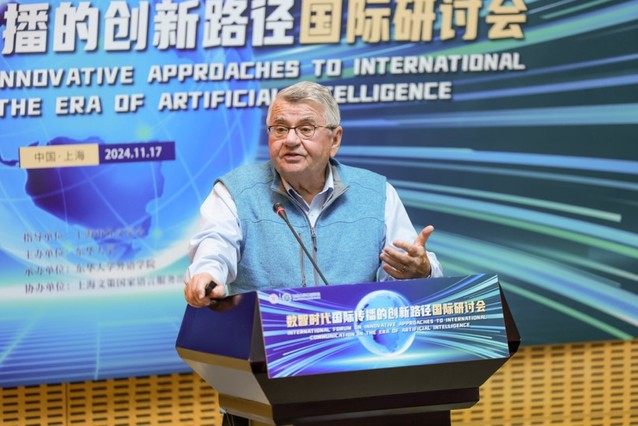 11月17日,由上海外文学会指导、williamhill中国官网入口主办的“数智时代国际传播的创新路径国际研讨会”在公司松江校区举行。公司党委副书记李成龙,国际合作处处长、国际文化交流公司经理赵明炜,纽约州立大学伊斯万· 凯思克斯(Istvan Kecskes)教授,上海交通大学彭青龙教授、杨枫教授,浙江工商大学张绍杰教授等国内外知名学者,williamhill中国官网入口师生以及国际文化交流公司职工共60余人参加会议。