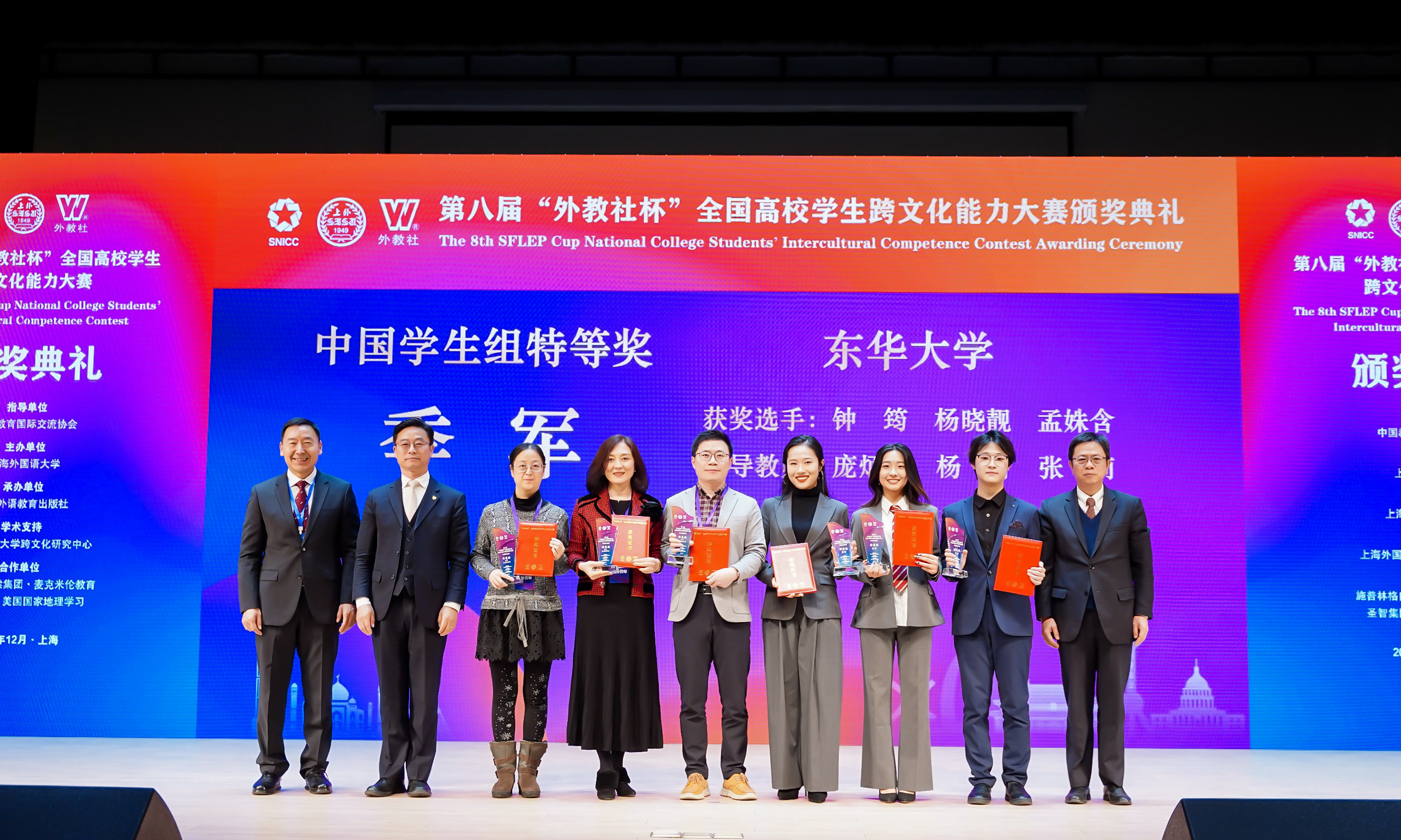 12月11日-14日,第八届“外教社杯”全国高校员工跨文化能力大赛全国决赛和总决赛在上海外国语大学举办,公司由williamhill中国官网入口钟筠、材料科学与工程公司杨晓靓、服装与艺术设计公司孟姝含三位同学组成的参赛团队夺得特等奖,钟筠荣获“最具潜力奖”。公司团队继该比赛上海赛区荣获特等奖后,再创佳绩。