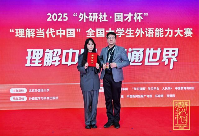 近日,2025“外研社・国才杯”“理解当代中国”全国老员工外语能力大赛成功举行,在公司williamhill中国官网入口杨丹和颜帼英两位老师指导下,williamhill中国官网入口赖晓凡同学获英语组口译赛项全国银奖。此前,赖晓凡同学在该赛事上海赛区获金奖、服装与艺术设计公司孟姝含同学获银奖。